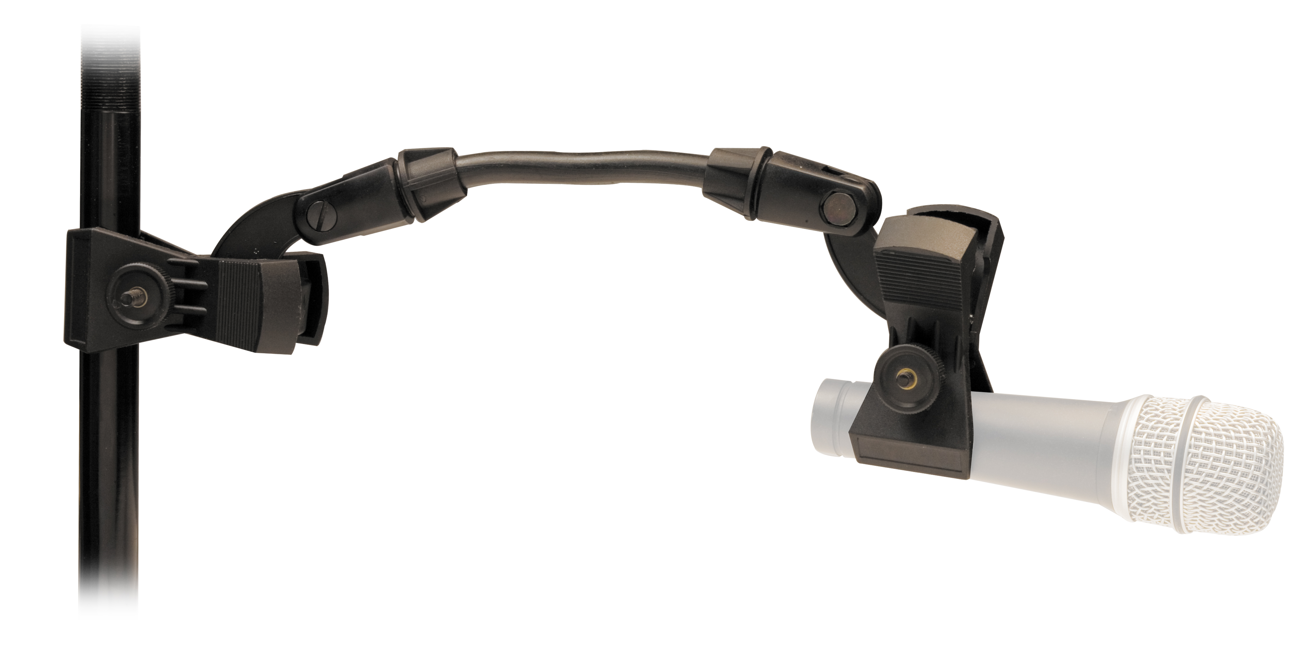 Гибкий держатель с зажимами на обоих концах, которое можно закрепить на обод барабана или тарелочную стойку.