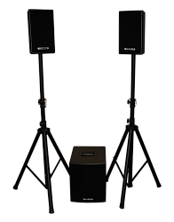 1 сабвуфер, 2 сателлита; cтойки для установки сателлитов и коммутация в комплект НЕ ВХОДЯТ