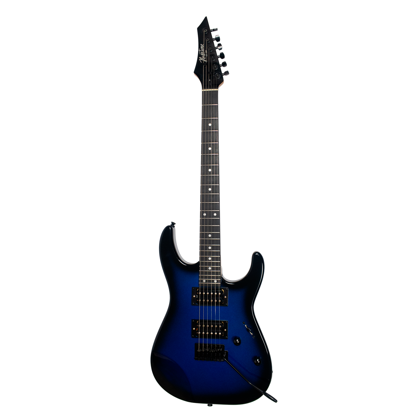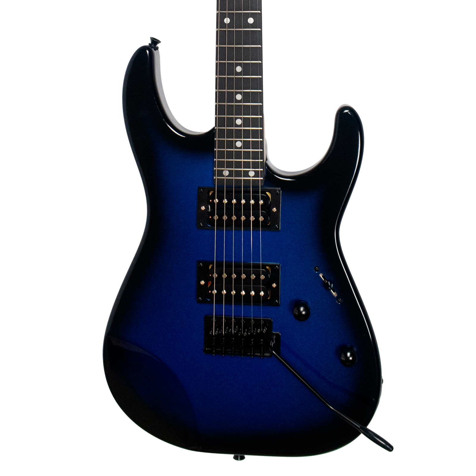 Чёрная фурнитура, реверсивная голова грифа и дека из тополя с глянцевым покрытием «синий металлический бёрст» выгодно дополняют агрессивные изгибы и узнаваемый силуэт «Суперстрата». А дополнительный срез на деке под правую руку делает игру на этой электрогитаре еще более комфортной.